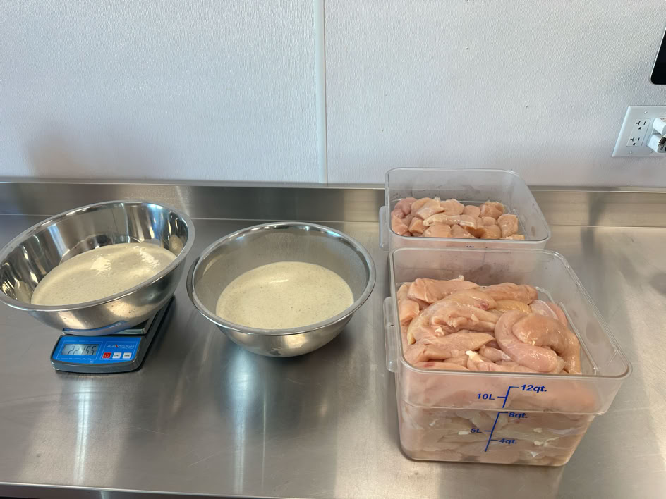 Ingredients & Setup : 8 Eggs, 1 Gallon Buttermilk, Salt, Pepper, Garlic Powder, Scale, 2 Large Stainless Steel Bowls, Whisk, 1OZ Cup