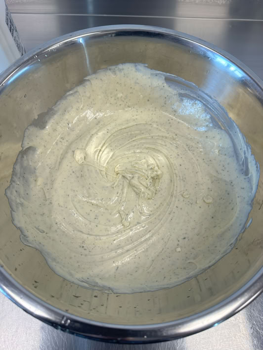 Add 1000g of Mayo. Mix well.
