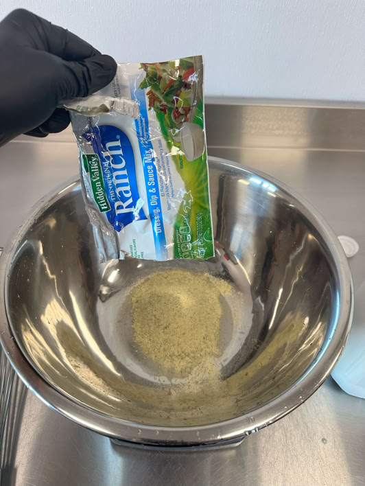 Add a pouch of ranch spices to bowl.