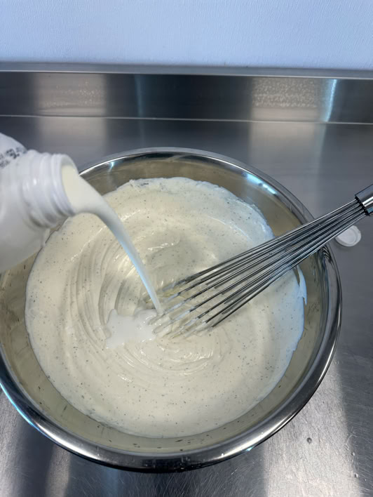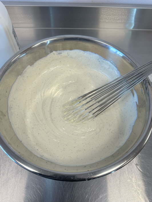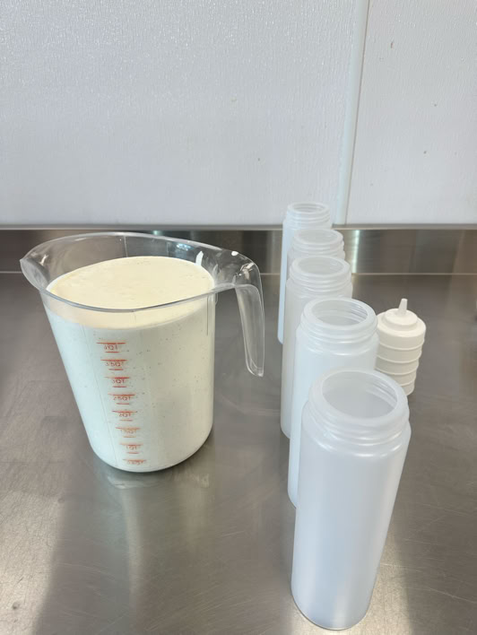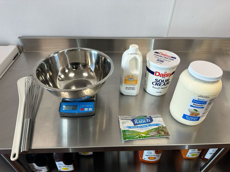 Ingredients & Setup : Buttermilk, Sour Cream, Mayo, Ranch Spices, whisk, spatula, large stainless steel bowl, Pitcher.